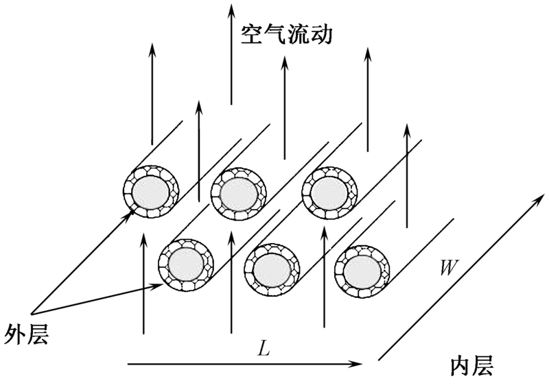 织物纤维通风传热模型 L表示织物长度;W表示织物宽度。"