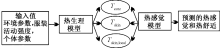 人体-服装-热生理模型 Tskin为人体皮肤温度;Tcore为人体核心温度;Tskin,local为人体皮肤局部区段温度。"