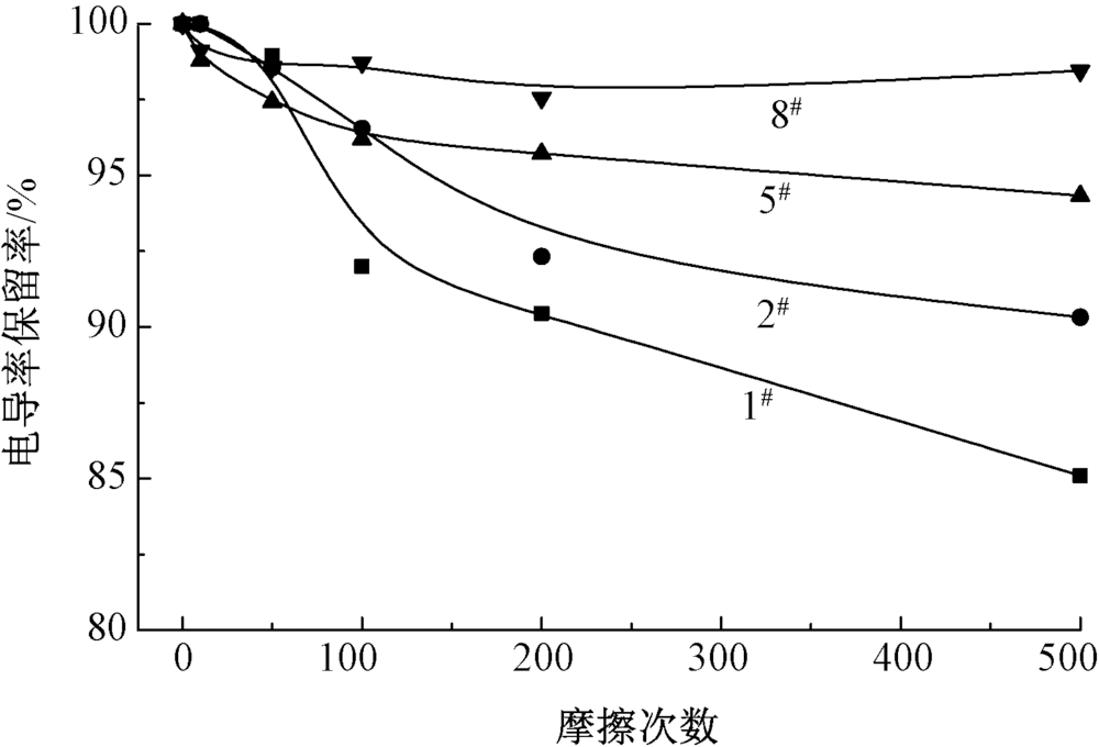 为提高聚苯胺导电层与基材之间的黏结牢度,以聚乙烯醇为共混高聚物,通过连续原位聚合法在对位芳纶纱线表面形成聚乙烯醇/聚苯胺导电层,制备得到芳纶/聚苯胺/聚乙烯醇复合导电纱。分析了导电纱的结构与性能,并研究了聚乙烯醇对聚苯胺导电层耐水洗和耐磨性的影响。结果表明:适量添加聚乙烯醇有助于提高导电纱导电层的结构规整性及电导率,随着聚乙烯醇质量分数的提高,导电纱的电导率呈先上升后下降的趋势,当聚乙烯醇占苯胺的质量分数为4.30%时,制得的复合导电纱线的电导率最高,达到(1.120±0.198) S/cm;聚乙烯醇的添加和质量分数的提高,有助于聚苯胺导电层耐水洗性及在较小外力作用下的耐磨性的提高。