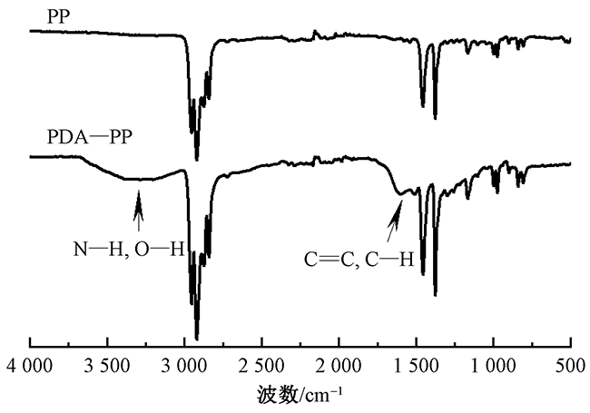 为降低聚丙烯(PP)补片的炎性反应,利用多巴胺氧化自聚合,在PP单丝表面制备了聚多巴胺(PDA)抑炎涂层,并对PDA-PP补片的微观形貌、表面成分、接触角、涂层稳定性、力学性能、体外抗氧化和体外抗炎性能进行了表征与分析。结果表明:PDA可在PP单丝表面形成分布均匀的微纳米颗粒涂层,进而使得PP表面的理化性能呈现出相应的变化;PDA不影响PP补片的力学性能,且抗氧化能力和形貌稳定性均可满足炎性反应初期调控的需求;通过炎性应答标志TNF-α和IL-6的24 h释放量可知,黏附于PDA-PP的巨噬细胞较PP补片分别降低了93%和100%的释放,初步证实PDA涂层可有效降低PP补片的体外炎性反应,进而有望应用于临床评估研究。