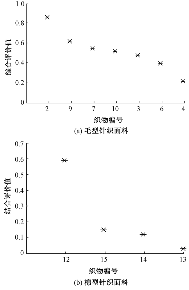 为探讨针织面料在西服开发应用的要求与标准,寻找能够用于西服开发的针织面料,分别从弯曲长度、折皱回复性、悬垂性3个方面对针织面料的挺括风格进行量化分析。借助实验仪器以及数据处理得到弯曲刚度、折皱回复角、静态悬垂系数3项性能指标,以机织西服面料为参考标准,对针织面料的挺括风格进行研究分析。结果表明:6路变化罗马组织是较为适合针织面料开发西服的组织结构,其结构稳定性优于12路小提花组织以及变化间隔组织,降低纵向弯曲刚度与横向弯曲刚度的差异;织物厚度增加0.1 mm,折皱回复程度提高10%;织物密度控制在110~130线圈/(5 cm)时,悬垂程度达到机织西服面料的60%以上;6路变化罗马组织配合高织物密度能够使针织面料的挺括风格达到机织西服面料的80%。