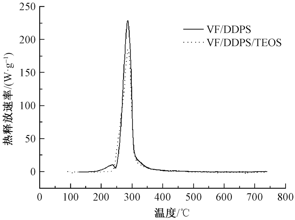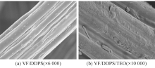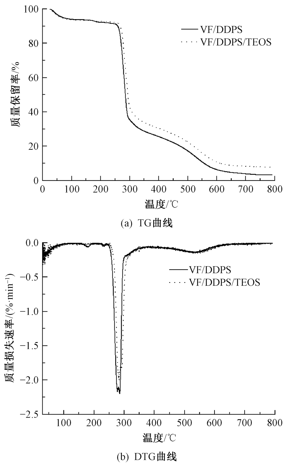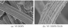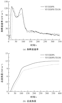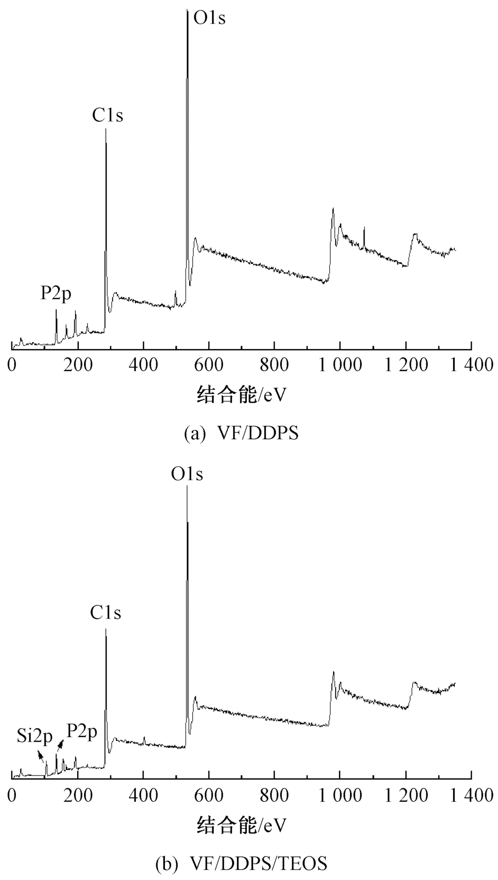 为提升粘胶/二硫代焦磷酸酯(VF/DDPS)纤维的阻燃性能,通过溶胶-凝胶法,采用正硅酸四乙酯(TEOS)对VF/DDPS纤维表面进行阻燃改性,得到阻燃粘胶纤维(VF/DDPS/TEOS)。借助扫描电子显微镜、X射线光电子能谱仪、热重分析仪、锥形量热仪、微型量热仪、单纤强力仪等对改性纤维的结构和性能进行分析。结果表明:改性后VF/DDPS/TEOS纤维的阻燃性能提高,其在750 ℃时的残炭量从3.23%增加到7.93%,引燃时间从4 s延长至16 s,热释放速率峰值和总热释放量分别下降了19.3%和16.0%,极限氧指数从28.2%升高至29.3%;VF/DDPS/TEOS纤维表面形成了致密的氧化硅保护膜,二氧化硅在纤维燃烧过程中显著增强了纤维表面炭层的热质阻隔作用;阻燃整理后纤维的断裂强度、断裂伸长率及吸湿性能均有所降低。