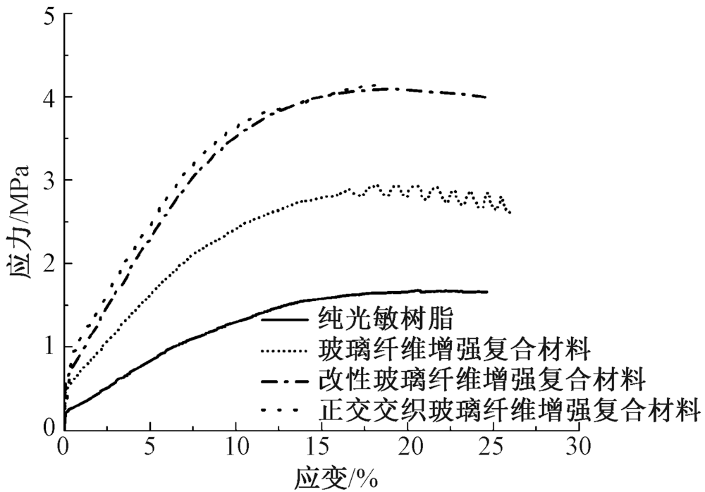 为解决光固化3D打印树脂材料强度低的问题,将玻璃纤维与光敏树脂复合,采用光固化3D打印技术制备玻璃纤维增强复合材料,分析了玻璃纤维经硅烷偶联剂改性处理以及玻璃纤维的铺层方式对复合材料力学性能的影响。结果表明:玻璃纤维可提升复合材料的拉伸强度和弯曲强度,相比于未处理的玻璃纤维,经硅烷偶联剂处理的玻璃纤维对复合材料力学性能的提升更为显著,复合材料的拉伸强度提高了50%,弯曲强度提高了143%;相较于连续长纤维的铺层方式,采用模拟三维正交的铺层方式对于复合材料力学性能影响更为显著,拉伸强度提升了110%,而弯曲强度增加了147%。