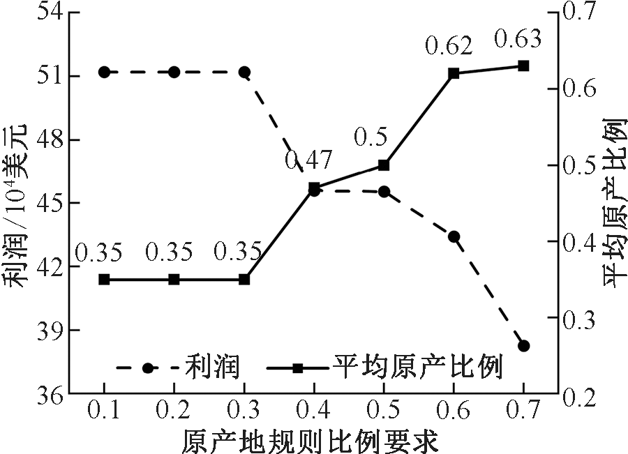 为了实现纺织企业跨境供应链网络的利润最大化,在考虑原产地规则的基础上,综合考虑工厂布局、供应商选择、生产及运输等重要决策,构建了最大化利润的混合整数非线性规划模型,并将其等价转化为可最优求解的线性规划模型,设计相应的Benders分解算法实现对模型的最优求解。最终通过仿真,针对不同的贸易制度安排,特别是即将实施的“区域全面经济伙伴协定”中的区域累积原产地规则,研究了其对企业跨境供应链网络设计决策及利润的影响。研究结果表明:随原产地规则比例要求的提高,会导致企业利润的下降,而在区域累积的原产地规则下,企业能够更自由地进行选址及生产采购决策,有利于实现全球供应链的最优配置。