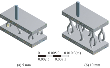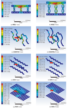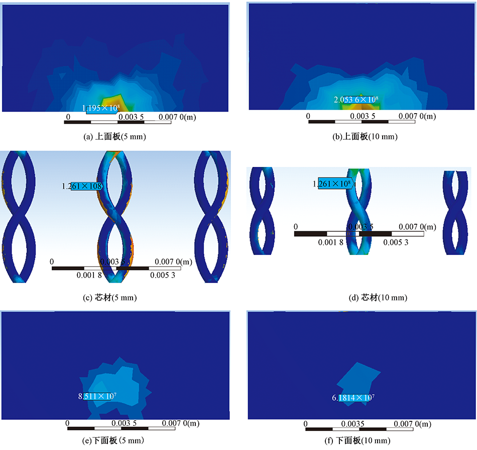 为研究三维夹芯复合材料低速冲击力学响应及损伤机制,借助ANSYS有限元软件,建立不同芯材高度的三维夹芯复合材料细观结构模型进行低速冲击响应模拟,并将模拟值与实验值进行对比分析。结果表明:从宏观角度分析,三维夹芯复合材料抗低速冲击性能随着芯材高度的增加而增加,在上面板均已损坏的情况下,芯材高度为5 mm的材料芯材破坏情况更严重,模拟结果与实验结果具有较好的一致性;从细观角度分析,材料中的经纱、纬纱、接结经纱是承载的主体,树脂基体起次要作用;在5 J能量冲击作用下,材料的破坏模式主要是树脂形变、碎裂,纤维与树脂脱黏。