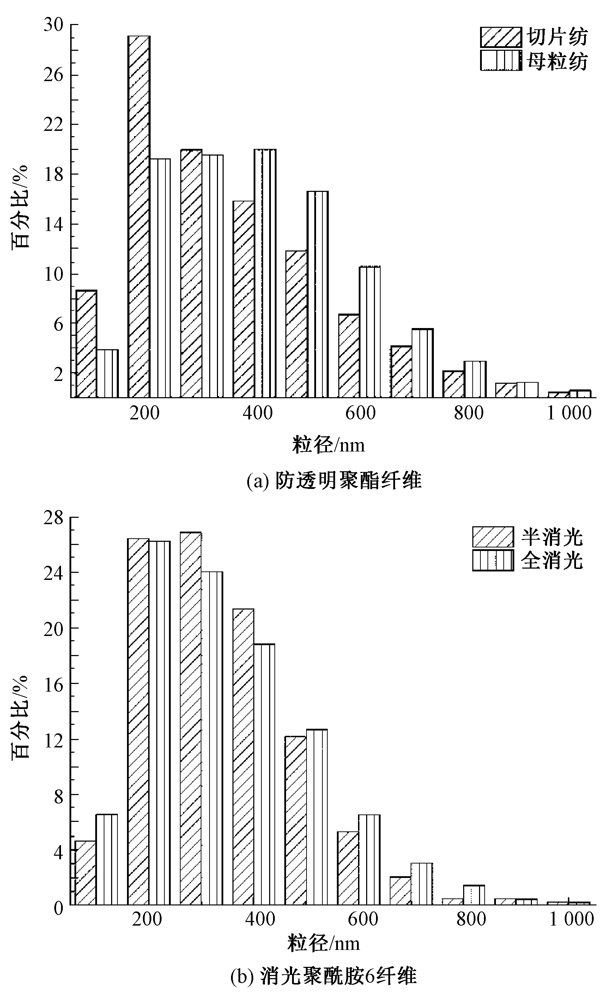 防透明聚酯和消光聚酰胺6纤维中TiO2颗粒的粒径分布统计图"