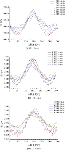 为更好地控制高速经编生产中的纱线张力,以HKS2-SE型高速经编机为实验平台,测量其在1 000~4 000 r/min时的纱线张力,并借助纱线张力的最大值、平均值及标准差对纱线张力水平进行评价,使用单周期纱线动态张力曲线、概率密度曲线、偏度与峰度对纱线张力分布、波动情况进行分析。结果表明:随着机速的提高,纱线张力的最大值、平均值、标准差逐渐降低,各纱线之间的张力差异逐渐下降,纱线整体织造张力水平降低,同时单个成圈周期张力主波峰的高度降低,纱线张力波动减弱;而机速过高或过低,纱线张力波动均有增大的趋势,机速在2 500~3 500 r/min时,张力分布曲线平均值附近数据分布较集中,纱线张力波动较为稳定。