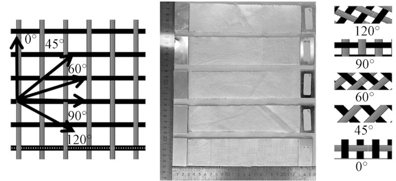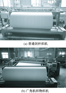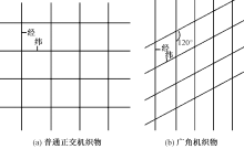 为开发适用于不同应用领域的产业用纺织品,在对原有普通剑杆织机改进的基础上,探讨了广角机织物的织造工艺,织造了经纱和纬纱夹角为120°的涤/棉平纹广角机织物。借助万能材料试验机研究了普通涤/棉正交织物和广角机织物不同偏轴方向的拉伸力学性能,获得了其应力-应变曲线和特征值变化规律,并分析了其变形及失效模式。结果表明:对于普通正交机织物和广角机织物,其拉伸断裂强力均呈现出明显的极轴特性;在断裂强力相同的情况下,与普通正交机织物相比,广角机织物纬向的断裂伸长率提高了30%,经、纬向弹性模量分别提高了42%和79%,展现出优异的强度和变形特征。