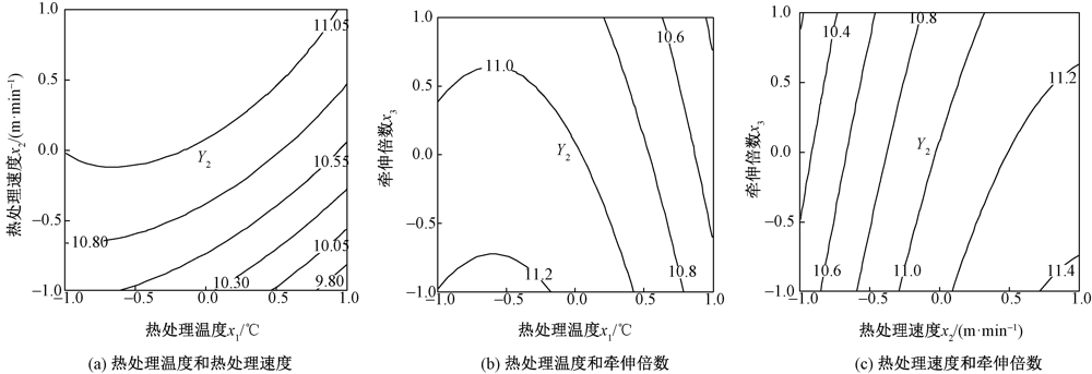热处理工艺对响应值纱线断裂强力的等高线图"