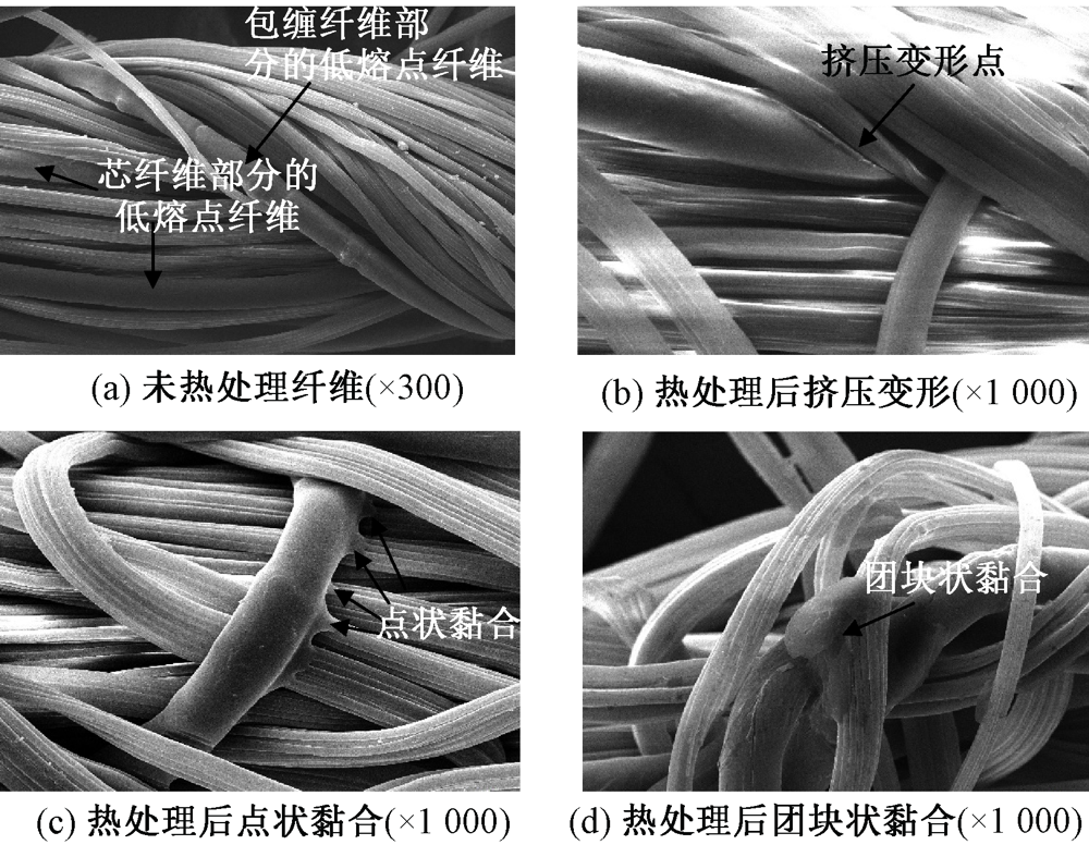 热处理前后喷气涡流纱中低熔点涤纶形态图"