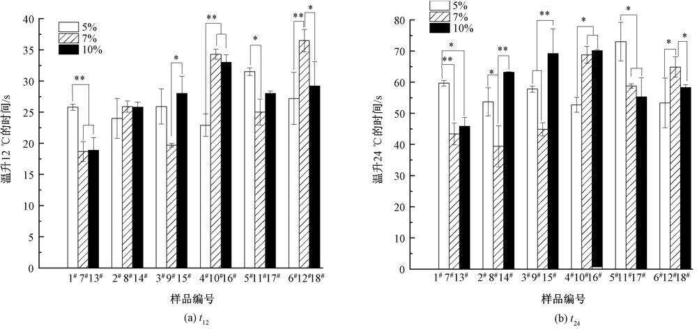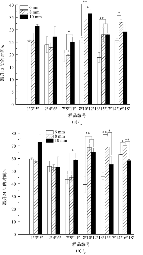 为进一步提高热防护服的综合性能,满足增加防护性和降低热应激的需求,构建了石墨烯气凝胶复合面料系统。通过不同的评价指标,在低辐射热环境下探讨了制备过程中氧化石墨烯水溶液的质量分数、石墨烯气凝胶的厚度、石墨烯气凝胶中是否添加碳纤维3个因素对复合面料系统热防护效果的影响。实验结果表明,与对照组相比,加入石墨烯气凝胶的复合面料系统有较好的热防护性能,可将人体产生热损伤的时间延长165%~318%,将产生二级烧伤时间延长87%~225%,将面料系统最大温差降低35.6%~63.9%;温升12 ℃的时间、温升24 ℃的时间和面料系统最大温差3个影响因素之间存在交互作用,而指标面料系统到达最高温度的时间在3个因素之间不存在交互作用,碳纤维因素主效应显著。