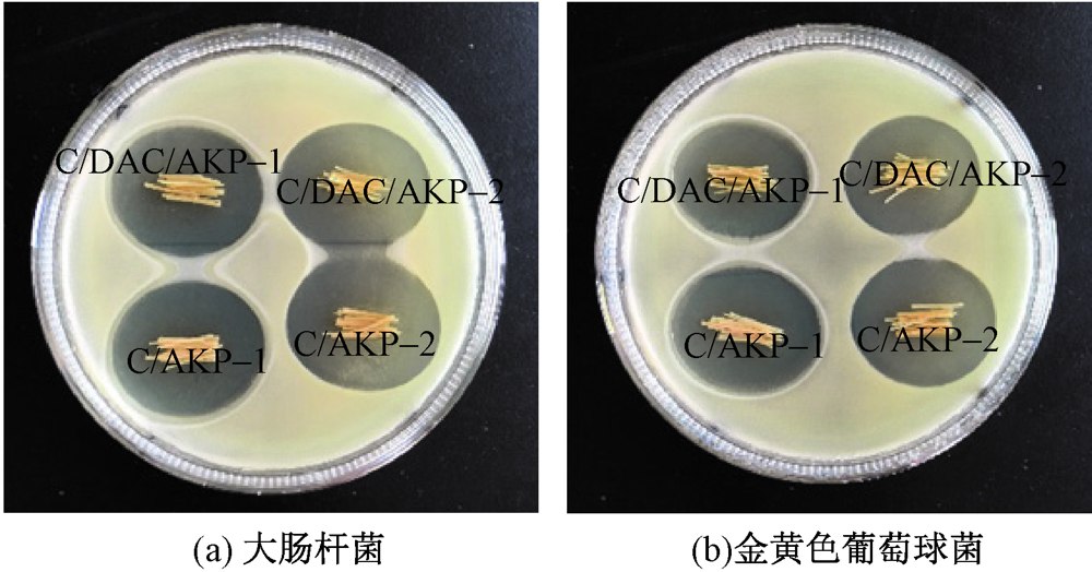 为改善纤维素/磷虾蛋白(C/AKP)复合纤维的可降解性和抗菌性,在原液中加入氧化纤维素(DAC)制备C/DAC/AKP纺丝原液,采用湿法纺丝技术分别在H2SO4/Na2SO4/ZnSO4和H2SO4/Na2SO4/KAl(SO4)2凝固浴中凝固后制得复合纤维,研究了DAC及凝固浴组分对纤维分子间作用、体外降解、抑菌以及热稳定等结构和性能的影响。结果表明:在相同的凝固浴中,相比于C/AKP复合纤维,C/DAC/AKP复合纤维体系内分子间氢键含量从24.26%增加至32.96%,热稳定性提高7.5%,降解性也有所改善;凝固浴中KAl(SO4)2的加入会提高纤维的分子间氢键以及热稳定性,同时C/AKP和C/DAC/AKP复合纤维均具有良好的抗菌效果,在生物材料方面具有良好的应用前景。