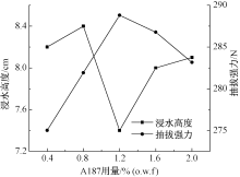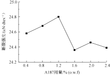 为提高F-12芳纶织物与橡胶之间的粘结性能,采用环氧树脂和偶联剂A187对F-12芳纶织物进行改性。通过成膜分析确定出环氧树脂的最佳用量;通过改性后F-12芳纶织物的浸水高度以及浸渍间苯二酚-甲醛树脂乳液后的拉伸强度和断裂强度测试,确定出偶联剂A187的最佳用量。在此基础上,对改性后的F-12芳纶织物进行硫化成型,测试织物与橡胶的剥离强度确定出最佳改性工艺。结果表明:环氧树脂用量为25%(o.w.f),偶联剂A187用量为1.2%(o.w.f)时,制备的F-12芳纶织物轻薄输送带的综合性能最佳;改性后浸水高度值最低的F-12芳纶织物制备的轻薄输送带的剥离强力达到最高,为12.1 N/mm,其剥离强度高于行业标准;制备的单层铺层输送带的扯断强力为6 495.25 N,断裂伸长率为13%,双层铺层输送带的扯断强力为14 493.25 N,断裂伸长率为14%。