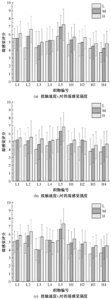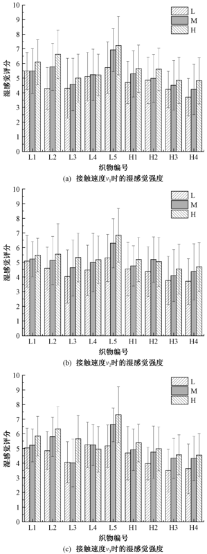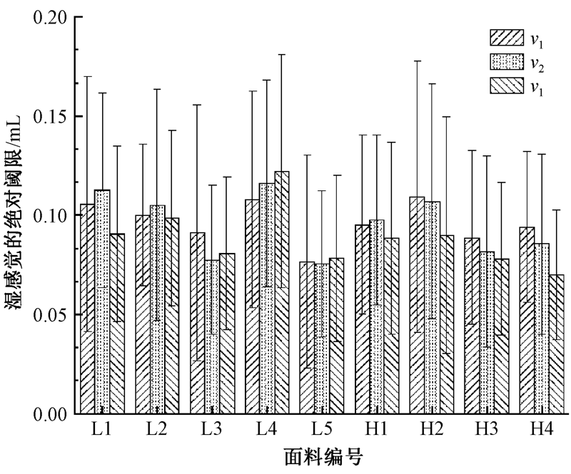 为研究织物以不同速度与皮肤动态接触过程中对湿感觉的影响,分析了湿感觉绝对阈限与阈上强度的影响机制。通过向织物内添加定量的水,让受试者应用心理学标尺对湿感觉的阈上强度进行评分;然后通过注射泵向织物持续加水直至受试者感觉到湿,记录此时的加水量为绝对阈限;最后采用温度传感器记录测试皮肤区域的温度变化,计算皮肤冷却率。结果表明:皮肤冷却率与湿感觉阈上强度呈正相关,与绝对阈限呈负相关;湿感觉阈上强度可根据织物的最大瞬态热流量、含水量和摩擦因数进行预测,绝对阈限可根据织物的润湿时间和摩擦因数进行预测;绝对阈限适用于评价皮肤在初始出汗状态下的湿敏感性,在皮肤大量出汗时用阈上强度可更好地评价湿敏感性。