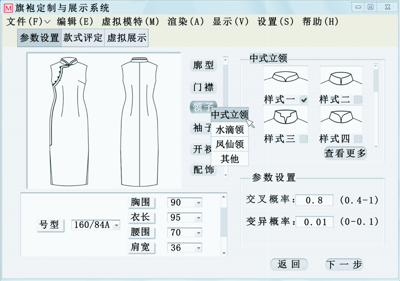 为解决传统服装定制系统操作过程繁琐,定制成本过高及定制服装类型单一等问题,以旗袍为研究实例,MatLab为开发平台,对旗袍的个性定制与虚拟展示系统进行设计研发。首先对旗袍的款式特征与构成要素进行提取,确定系统数据库参数信息;随后根据系统功能需求,将系统划分为5个功能区域,通过数据库资源数据及遗传算法进行交互式计算,实现参数区、款式评定区与虚拟展示区的界面展示,进而完成消费者对旗袍参数选择、款式评定及成衣虚拟展示的个性定制全过程;最后通过实际应用表明,系统在定制效率、顾客满意度方面较传统定制流程均有显著提高,从而验证了该交互系统的可行性与高效性。
