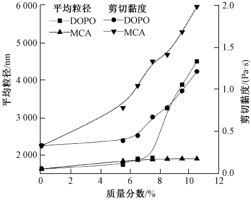 DOPO和MCA质量分数对聚酰胺6/甲醇-氯化钙涂层浆中聚酰胺6平均粒径和体系剪切黏度的影响"