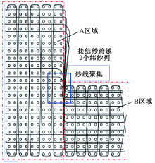 为解决采用传统的“压扁-还原”的机织方法制备三维纺织品预制体成型的局限性问题,通过深入研究织造连续性、整体性T结构预制体的成型技术,采用以正交组织为基础,通过经纱接结绑定,以机织的方法织造梁高与底面厚度相等且一次成型的T结构三维机织物。对织造工艺进行优化改进,织造了接结纱跨越不同的纬纱列数的2种T结构三维机织物,测量了不同区域的尺寸。结果表明:1个完整组织循环中,为使跨越底面区域的浮线下沉且满足织造尺寸要求,底面区域纱线数约是总纱数的一半;当纬纱跨越2个纬纱列时,织物表面的平整度和成型性更好。