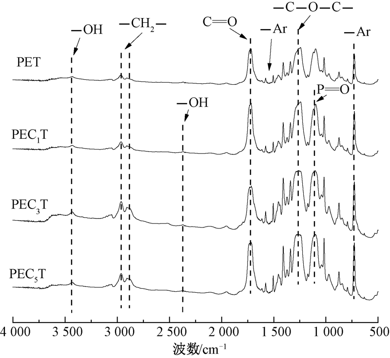 PET和含磷阻燃共聚酯的红外光谱图"