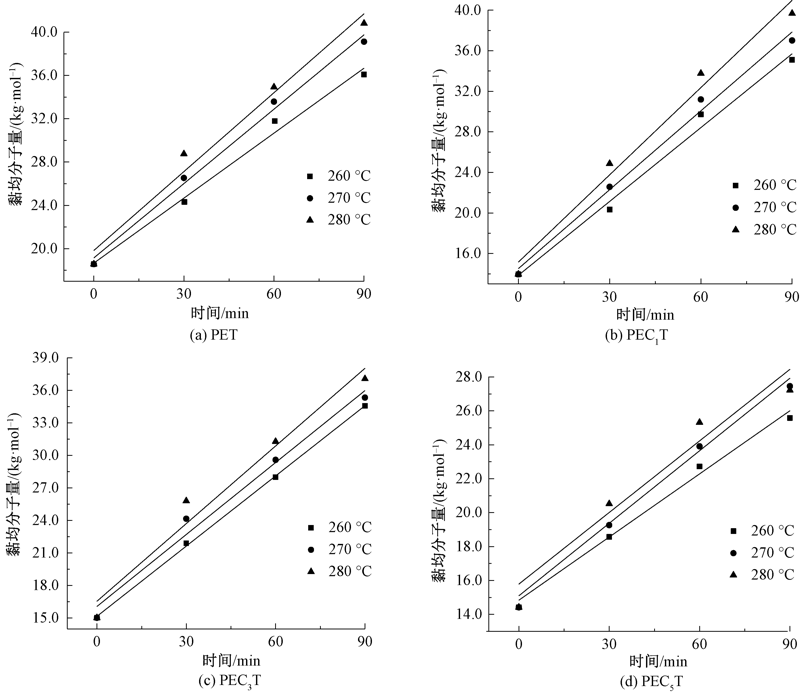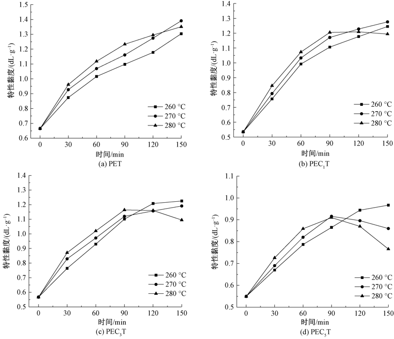 关键词: 含磷共聚酯, 阻燃聚酯, 熔融缩聚, 反应动力学, 熔融增黏反应
