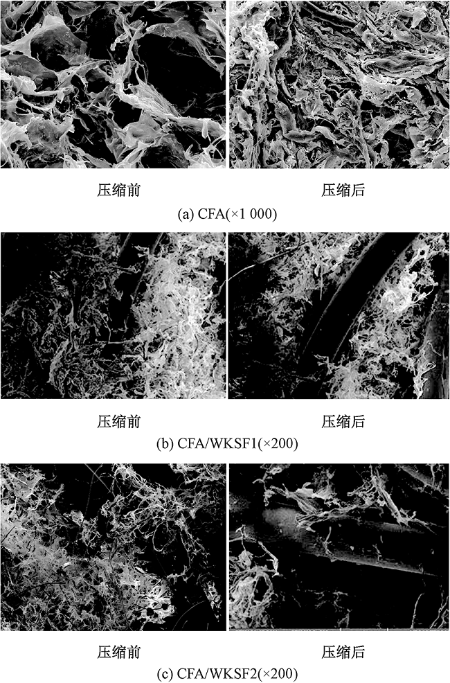 针对废旧纺织品制备纤维素气凝胶存在强度低、脆性高、韧性差的问题,将废旧棉花溶解在氢氧化钠/尿素水溶液体系中得到棉纤维素气凝胶(CFA),然后将经编间隔织物(WKSF)与其进行原位复合,经冷冻干燥得到CFA/WKSF复合材料,并对其形貌、压缩和隔热性能进行分析与研究。结果表明:CFA/WKSF复合材料保持了气凝胶的多孔网状结构;WKSF的加入使CFA的力学性能得到提高,其中编链和衬纬结构WKSF的加入使得CFA的压缩弹性模量和屈服强度分别提高了180%和450%,六角形网孔结构WKSF的加入使得CFA的压缩弹性模量和屈服强度分别提高了70%和312%;加入六角形网孔结构WKSF后,CFA/WKSF复合材料的导热系数相比CFA仅增加5%,仍具有良好的隔热性。
