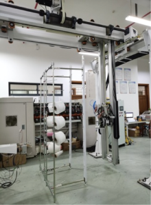 针对传统人工换筒的圆纬机存在生产自动化程度低、劳动强度大、人力成本高等问题,提出一种基于桁架机器人和换筒机械手的自动换筒方案。根据人工更换纱筒仿生工艺,结合圆纬机生产车间布局、纱架结构、纱筒类型以及换筒周期等因素,设计了桁架机器人和换筒机械手的机械结构,以及自动换筒的工艺流程和电气原理图等,并研制了实验室测试机构。最后研究了基于AS320T模块和伺服电动机的纱筒更换控制算法,实现了利用触摸屏作为人机交互界面的自动换筒功能。测试结果表明,采用此控制技术满足了圆纬机纱架自动换筒的准度、稳定性以及重复性要求,实现了以“机器换筒、人工接头”的方式为圆纬机续线,对解决传统人工换筒存在的问题具有重要意义。