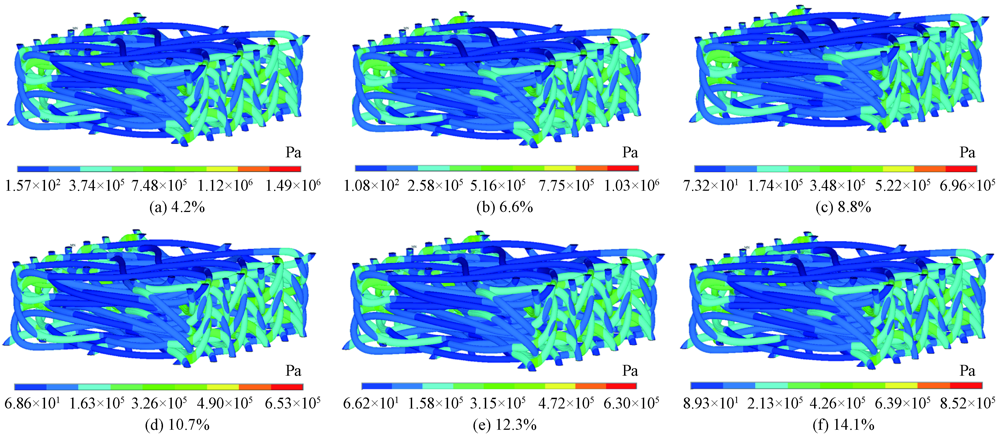 回潮率为8.8%时棉纤维集合体压缩过程应力云图"