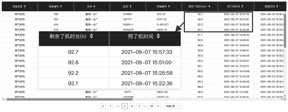样本序列 设备号 经轴号 开始时间 结束时间 总耗时/h