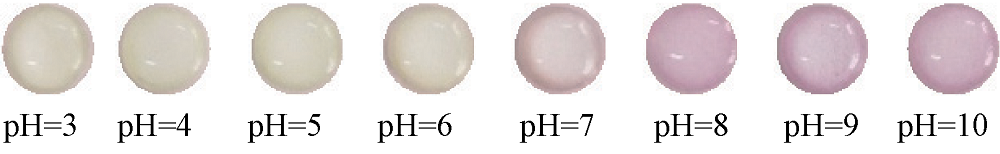 在不同pH值下比色传感纳米纤维膜的变色情况"