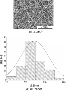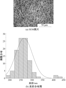 最优工艺制备的CS/Col纤维膜形貌及直径分布图"