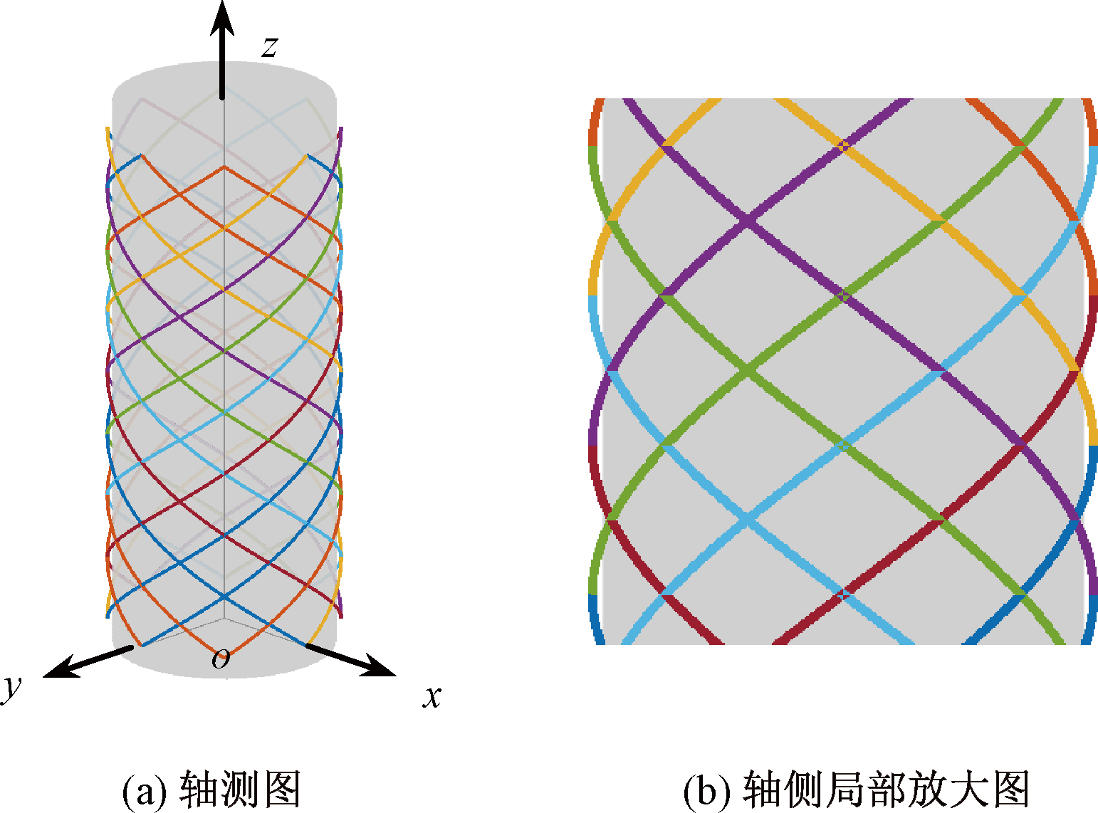 为解决六角形三维编织血管支架的编织工艺复杂、开发周期长的问题,提出了基于MatLab编程的支架三维虚拟编织方法,以快速完成编织工艺开发。首先,基于六角形编织机底盘的结构特点,对底盘单元进行坐标数值化,从而可将支架编织的工艺和工序转换为不同时刻下携纱器在底盘上的XY平面坐标和运动信息以及纱线在芯棒上的高度坐标z值,并应用数值计算方法进行连接和拟合,建立纱线空间轨迹的数学模型,得到虚拟支架的三维基本形态。然后,将编织支架的三维形态展开为二维形态,分析二维平铺形态下单向支架沿螺旋方向缠绕的特点,应用线性方程组求解纱线的交织点坐标,并通过层内和层间的纱线交织关系判断得到各交织点的交织类型。最后,通过方程修正得到具有六角形编织特征的纱线波动方程,进一步建立了具有纱线立体交织特征的虚拟支架实体化数学模型。经不同编织工艺的支架虚拟仿真实验,将虚拟支架与其实物进行比较发现,虚拟支架均能准确直观地表达实物的几何特征和交织特征。由此验证了虚拟仿真建模的正确性,有利于六角形三维编织工艺的快速开发。