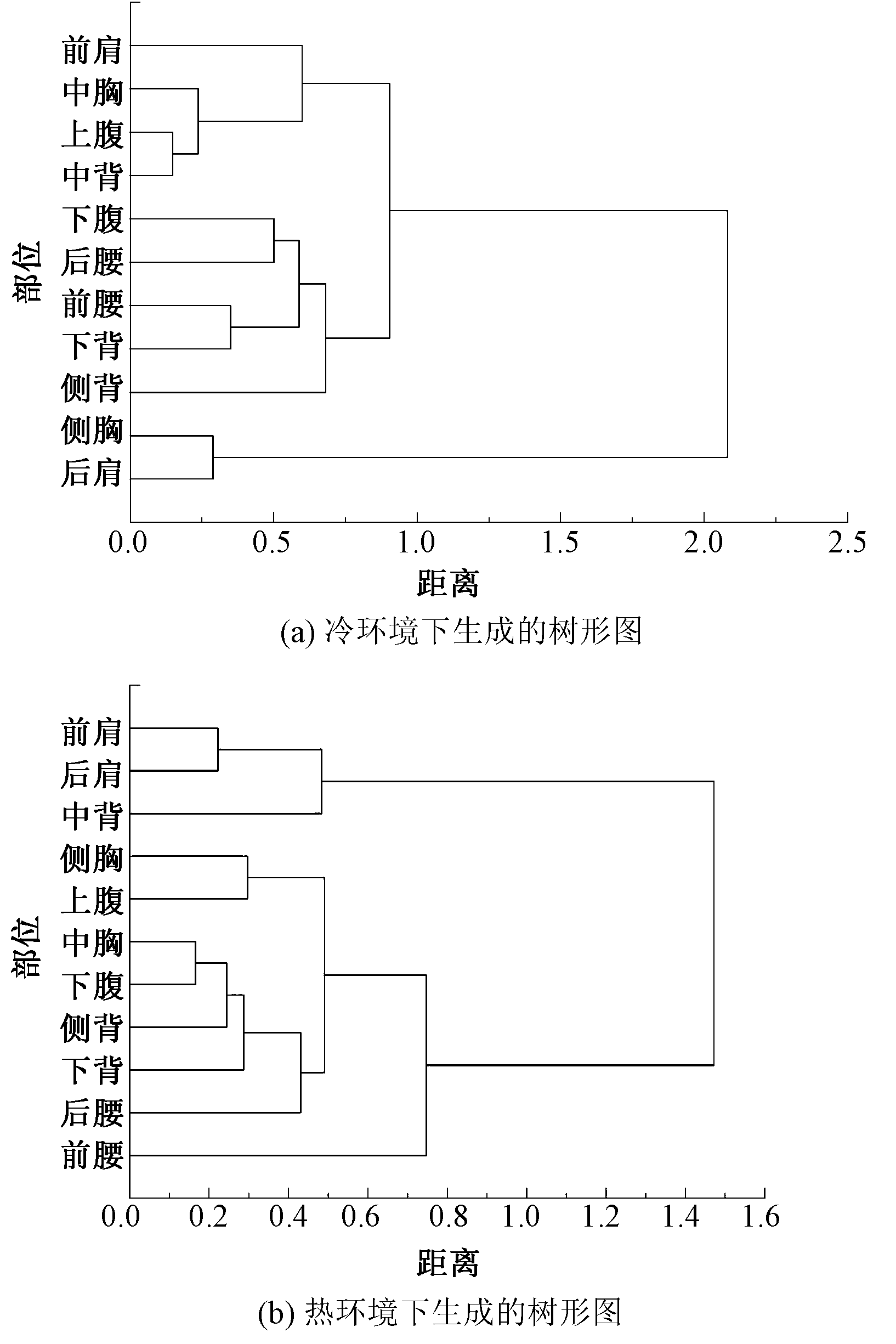 针对制冷与加热一体式服装中冷热调节区域设计问题,以皮肤温度为依据,探究人体受冷热环境影响上躯干各部位的冷热需求程度。分别测量冷与热2种环境下,青年男子在静坐、站立、步行、快走4种运动状态中上躯干不同区域的皮肤温度,分析各部位皮肤温度变化来判断人体局部区域的冷热情况,对皮肤温度变化值采用聚类分析来进行冷热调节区域的划分。结果表明:在冷环境下,人体上躯干皮肤温度在任一状态下侧胸、后肩温度均较低,且在静坐、站立阶段中明显低于人体平均皮肤温度;热环境下,任一状态下前肩、后肩温度均较高,前肩、后肩、中背明显高于人体平均皮肤温度,故侧胸、前肩及后肩等部位的冷热需求是功能服装设计的重点。