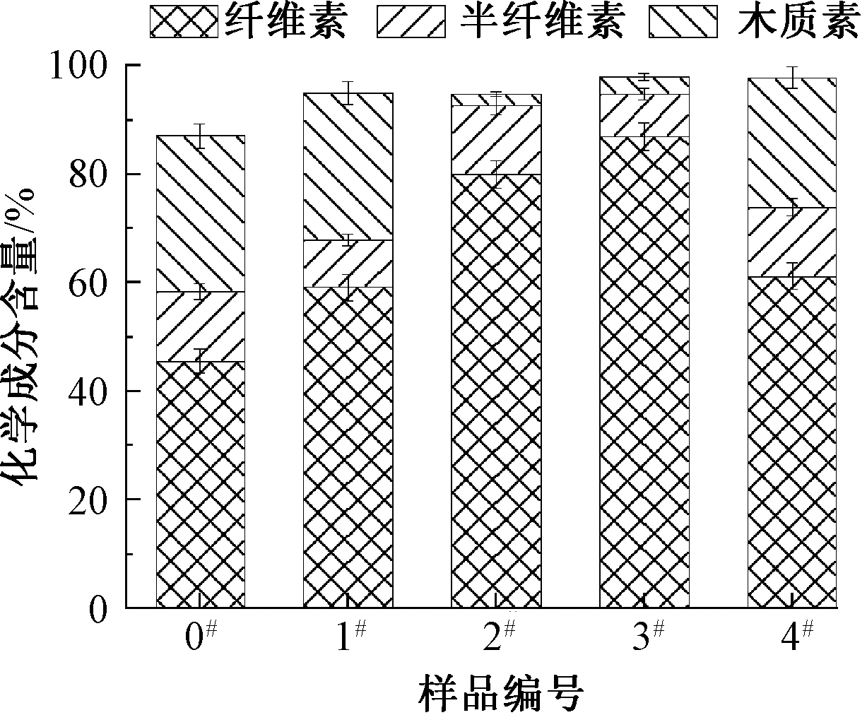 针对传统竹原纤维制备过程能耗大、污染环境、时间长,且获得的纤维表面粗糙、长度低等问题,构建了氯化胆碱-乳酸低共熔溶剂(DES)脱胶、过氧乙酸(PAA)脱胶、DES协同PAA脱胶3种绿色脱胶方法。通过傅里叶变换红外光谱、扫描电子显微镜和X射线衍射仪等测试手段,对采用传统方法和3种不同绿色脱胶工艺所得纤维的理化性能进行了测试和表征。研究结果表明:制备竹原纤维的4种方法均可去除胶质部分,经DES溶剂脱胶可有效脱除竹原纤维的半纤维素,但木质素残余量高,PAA脱除木质素的效率最高,DES协同PAA脱胶制备的纤维素含量最高;随着竹原纤维无定形区域胶质部分的脱除,4种脱胶方式均可提高纤维的相对结晶度,但传统脱胶制备的纤维结晶度变化最小;DES协同PAA脱胶制备的纤维线密度最低(50.07 tex),断裂强度最高(2.98 cN/dtex),具有最佳的可纺性能。