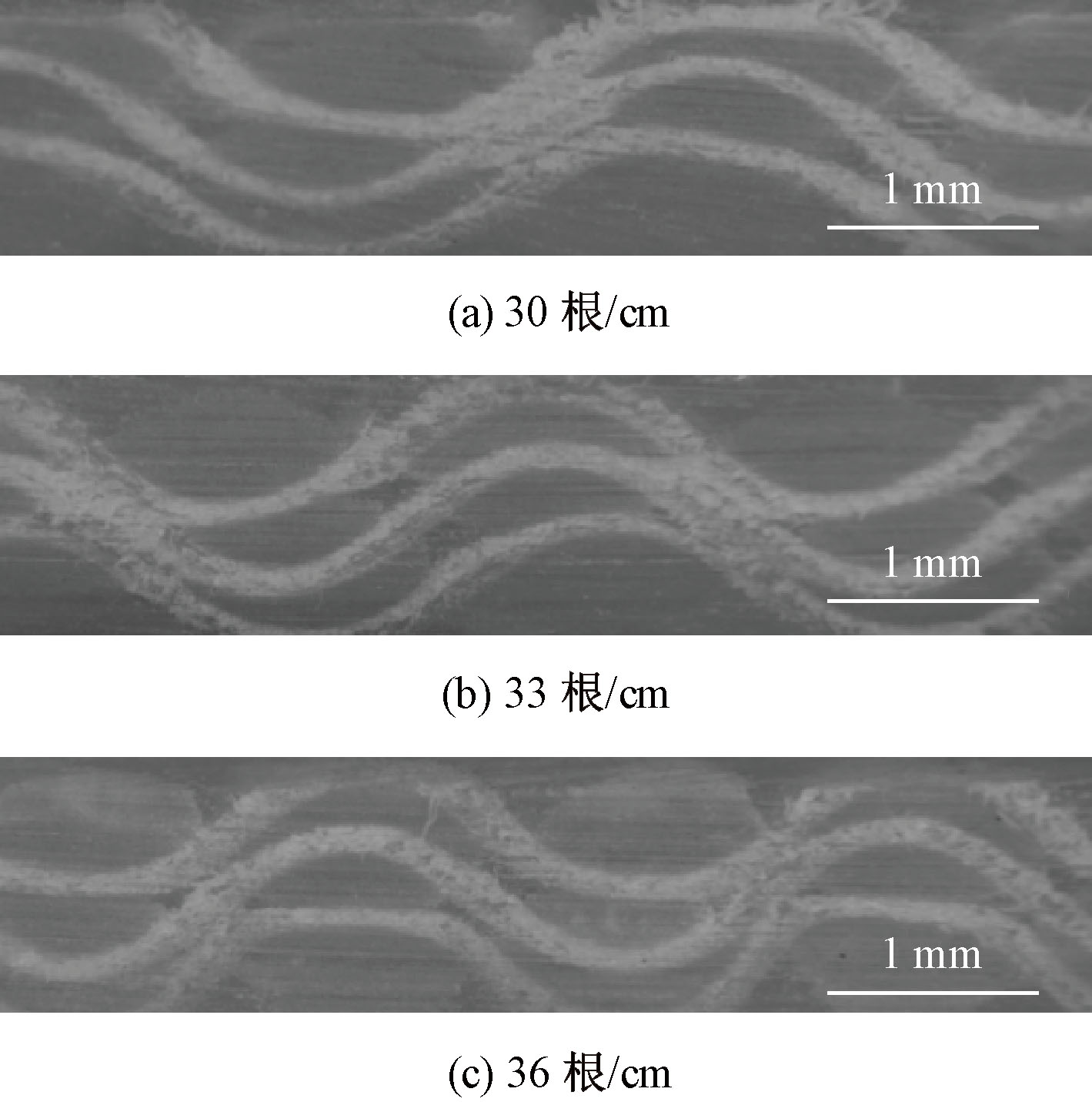 不同纬密的织物经向剖面图"