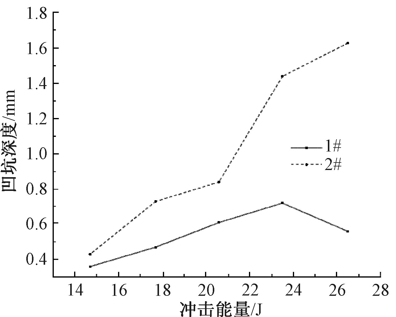 不同冲击能量下材料的损伤特征"