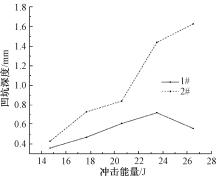 不同冲击能量下不同紧度材料的凹坑深度"