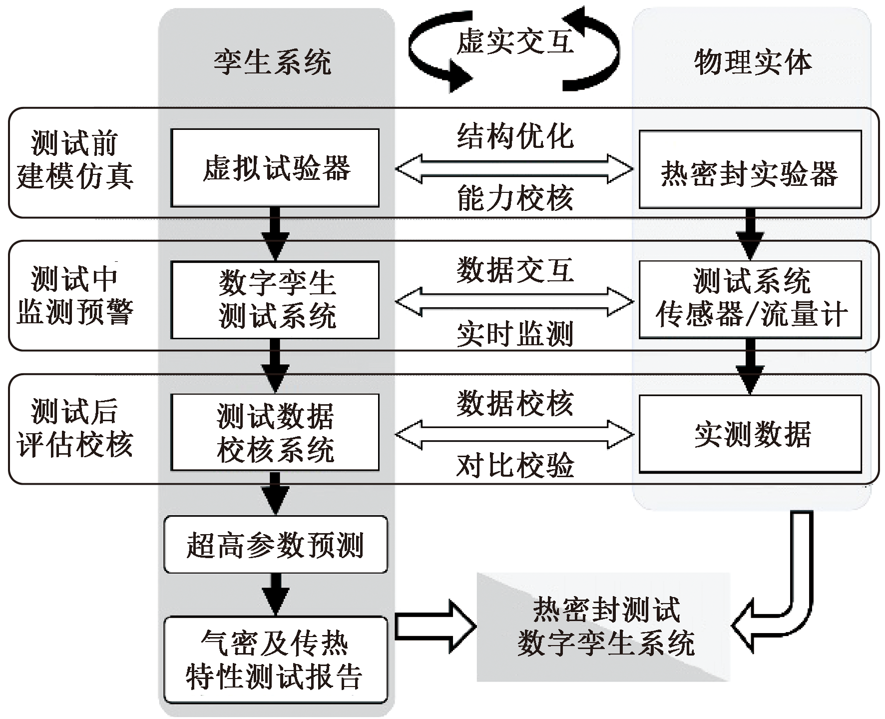 飞行器在高超声速飞行和再入过程中存在热侵蚀的安全隐患,高温高压苛刻环境对热密封材料要求越来越高,针对苛刻环境下飞行器用热密封材料特性评估难的问题,提出一种基于数字孪生的热密封材料气密及传热特性高温测试技术,并搭建虚拟和实体测试系统完成陶瓷纤维毡在不同工况下的气密及传热特性测试。测试前通过虚拟空间开展热密封环境模拟仿真,测试中通过数据在虚实空间的动态交互实现测试过程的监测预警,测试后运行数字孪生系统对测试结果进行评估,并基于孪生模型对超出测试范围的参数完成虚拟测试。实验结果表明:陶瓷纤维毡在30%压缩率、1 100 ℃高温时的泄漏率相较于常温工况约减少了72%,该研究解决了超高参数下热密封材料无法测试的难题。