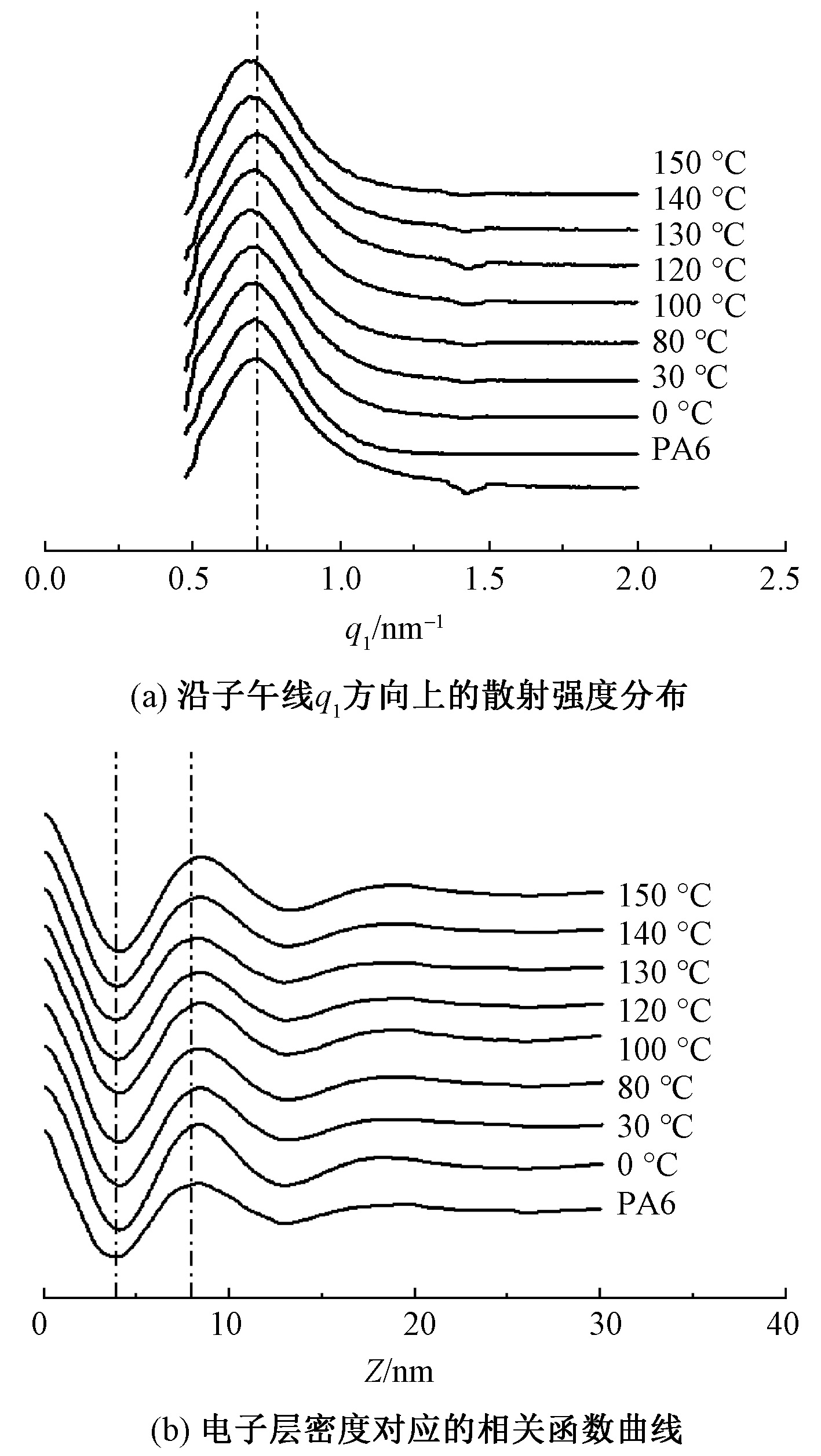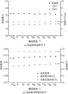摘要: 为探究锦纶6工业丝在不同温度区间的蠕变行为及形变机制,借助广角X射线衍射(WAXD)、小角X射线散射、双折射等测试研究了样品在0~150 ℃温度条件下蠕变前后的微观结构变化。结果表明:样品蠕变形变率均随着蠕变温度升高呈增大的趋势,卸去蠕变负荷后的弹性回复率与蠕变速率在温度低于玻璃化转变温度时基本保持不变,当蠕变温度处于玻璃化转变温度以上时弹性回复率降低,蠕变速率增加。卸去负荷后结晶度与晶区取向度均未发生明显变化,说明稳定的晶区结构在撤去蠕变负荷后均可完全回复;蠕变过程后锦纶6工业丝样品非晶区取向、片晶厚度和玻璃化转变温度均略有增加,部分取向程度较低的非晶区分子链在蠕变负荷下进一步发生形变而形成了取向的非晶区;在蠕变温度高于玻璃化转变温度的条件下,非晶区分子链的运动能力增强,导致变化程度更为明显。