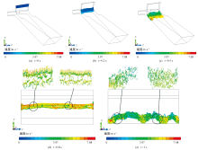 摘要: 气流成网机输纤风道的流场分布及纤维长度对于气流成网机能否均匀成网至关重要。为探究气流成网机风道结构对其影响并研究纤维在该风道内的运动形式,采用三维建模软件建立气流成网机风道的结构模型,采用Cradle CFD流体软件进行气流成网机风道内流场计算,建立纤维模型并与流场进行耦合计算,以研究分析气流成网机风道尾部开口对于风道流场的影响,以及在开口最佳情况下几种长度不同的纤维在流场的作用下的运动状况。结果表明:在相同条件下,气流成网机风道为10°开口时,流场分布最均匀,并以21.80 m/s的速度稳定均匀铺满风道的宽度方向;在其它条件不变时,纤维长度为15 mm相较于其它长度的纤维可以均匀地从气流成网机风道吹出,纤维分散更均匀,不会出现缠结堆积现象。