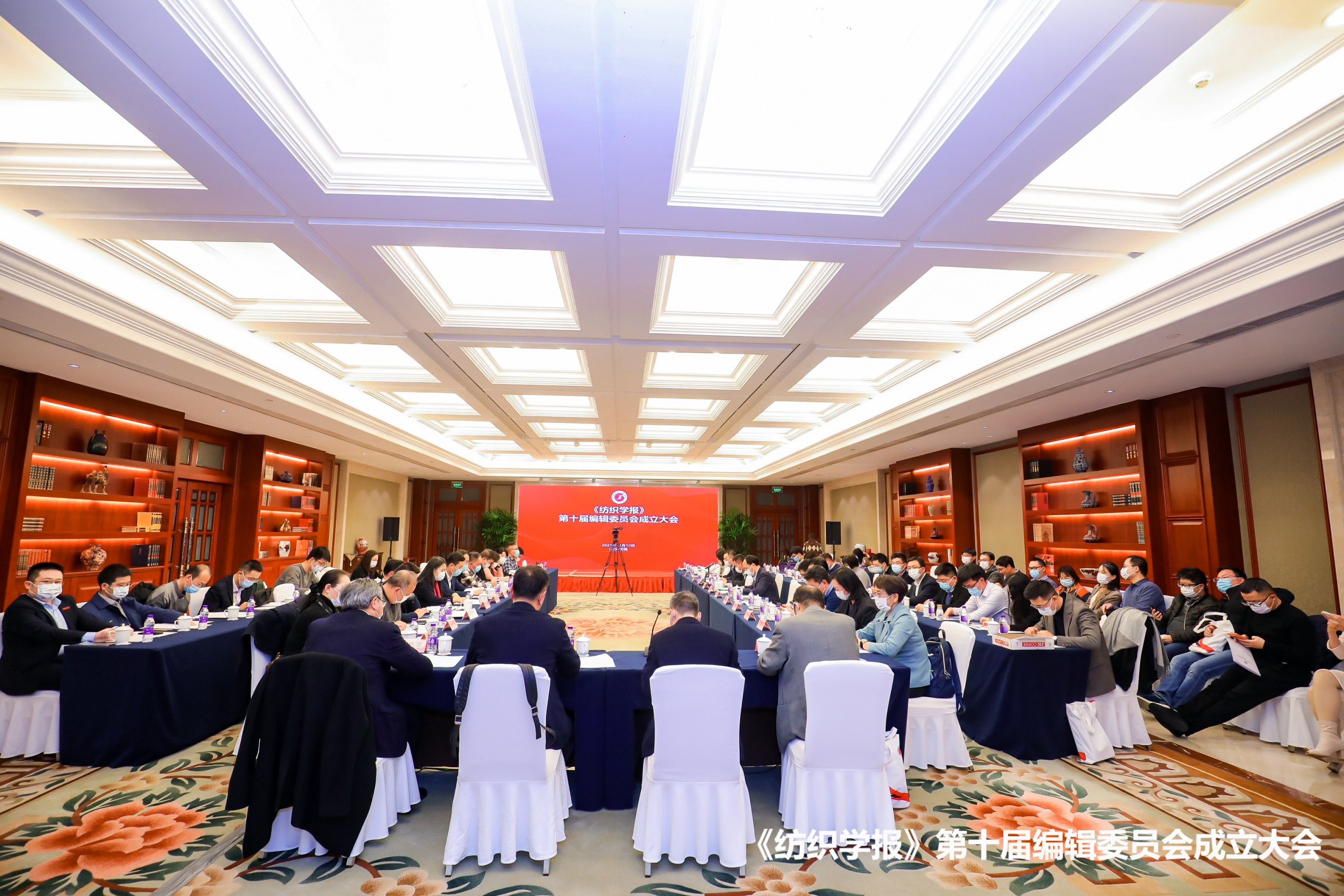 2021年12月10日,《纺织学报》第十届编辑委员会成立大会在江苏无锡召开。中国工程院院士/东华大学校长俞建勇(线上),中国工程院院士/武汉纺织大学校长徐卫林,中国纺织工程学会理事长伏广伟、常务副理事长尹耐冬、总工程师刘军以及各领域的专家和学者60余人出席会议。中国纺织工程学会期刊处处长/《纺织学报》编辑部主任张洪玲主持会议。