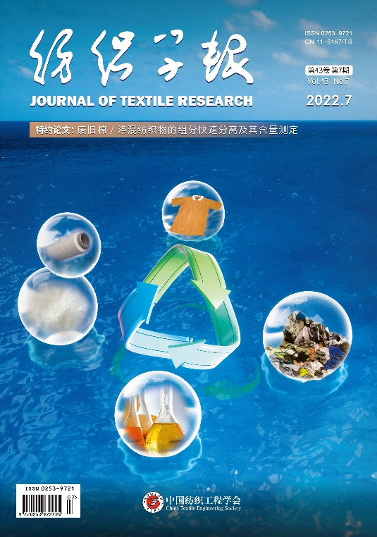 中国是全球最大的纺织服装生产国和消费国,每年纤维消费总量约3 000万t。废旧纺织品的资源化利用是纺织行业推动绿色低碳循环发展、促进行业全面绿色转型的大势所趋,对降低碳排放、减少环境污染具有重要意义与实用价值。棉/涤混纺织物在废旧纺织品中占比很大,同时也是织物回收利用的难点,传统的机械分拣无法实现棉/涤各组分的分离与回收。新型绿色溶剂离子液体的应用及离子液体对纤维素成分的高效溶解,为废旧棉/涤混纺织物的回收利用提供了新思路。
