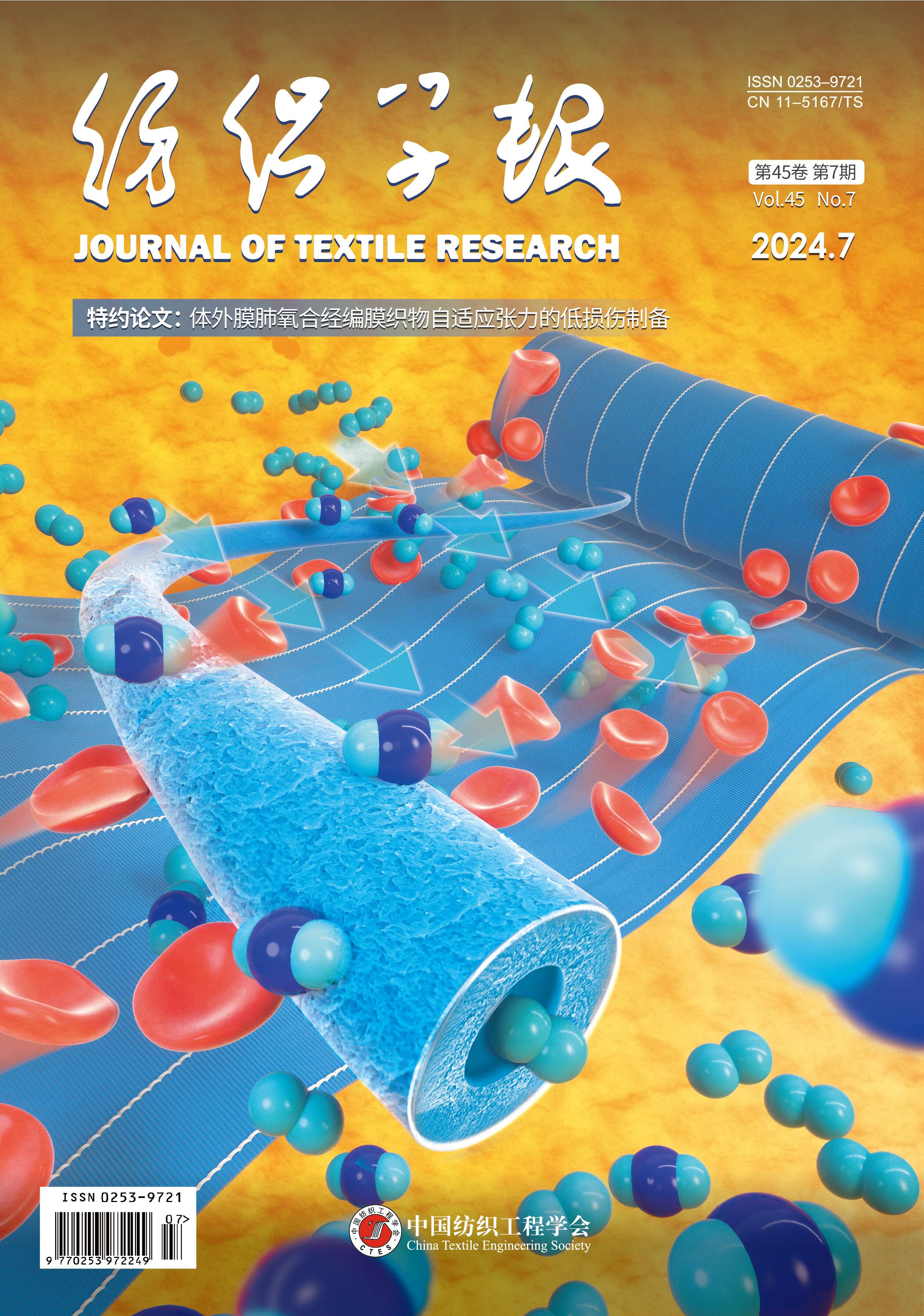 为提高纳米纤维防护材料的热湿舒适性,利用乙烯-辛烯共聚弹性体(POE)和醋酸丁酸纤维素酯(CAB)为原料,通过熔融共混相分离法制备了辐射降温POE纳米纤维膜,并与乙烯醇-乙烯共聚物(PVA-co-PE)纳米纤维膜、棉织物进行对比,研究其形态结构、红外辐射透过率、降温效果及透湿性。结果表明:POE纳米纤维膜的形态均匀,平均直径为570 nm,其直径及孔径均大于PVA-co-PE纳米纤维膜;POE纳米纤维膜的中红外辐射(7~14 μm)透过率接近100%,且随着纳米纤维膜厚度的增加而明显下降。与之对比,PVA-co-PE纳米纤维膜在相应波段的透过率有所下降,而棉织物完全不能透过中红外光;POE纳米纤维膜具有更好的红外辐射降温效果,将其覆盖在加热模块表面后,真空条件下模块温度保持不变,室温条件下模块温度仅升高0.5 ℃;此外,POE纳米纤维膜表现出良好的透湿性,其透湿率为2 845 g/(m2·d),略低于棉织物的(3 530 g/(m2·d));将POE纳米纤维作为涂层材料涂覆在棉织物表面构筑复合防护膜,可提升棉织物的过滤阻隔性能,且不影响其热湿舒适性。