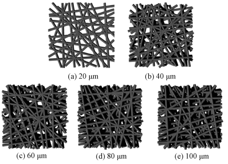 Vertical view of 3-D structure model of PU membrane with different thicknesses"