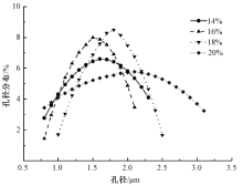 SiO2质量分数量/% 平均孔径/μm 最大孔径/μm 孔隙率/%