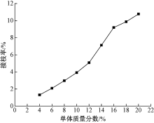 Curve of acrylic acid grafting rate with monomer mass fraction"