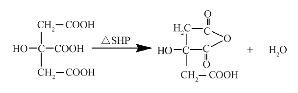 Reaction formula on dehydration of citric acid to form acid anhydride"