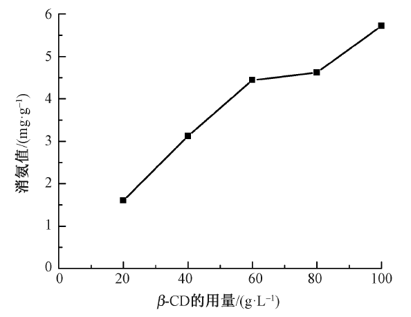 Effect of β-CD dosage on ammonia elimination value of finished fabric"