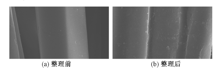 SEM images of before (a)and after (b) fabric finishing(×5 000)"