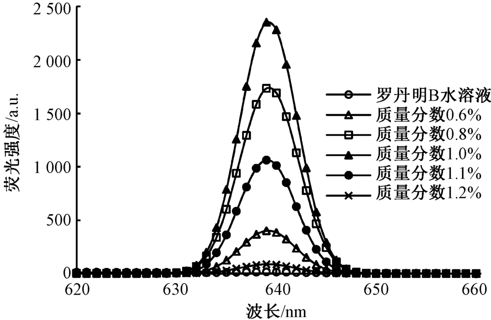 Fluorescence spectra of polyacrylate/rhodamine B composite latex at different contents of rhodamine B"