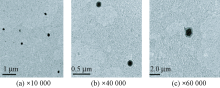 TEM images of polyacrylate/rhodamine B composite latex at different magnifications"