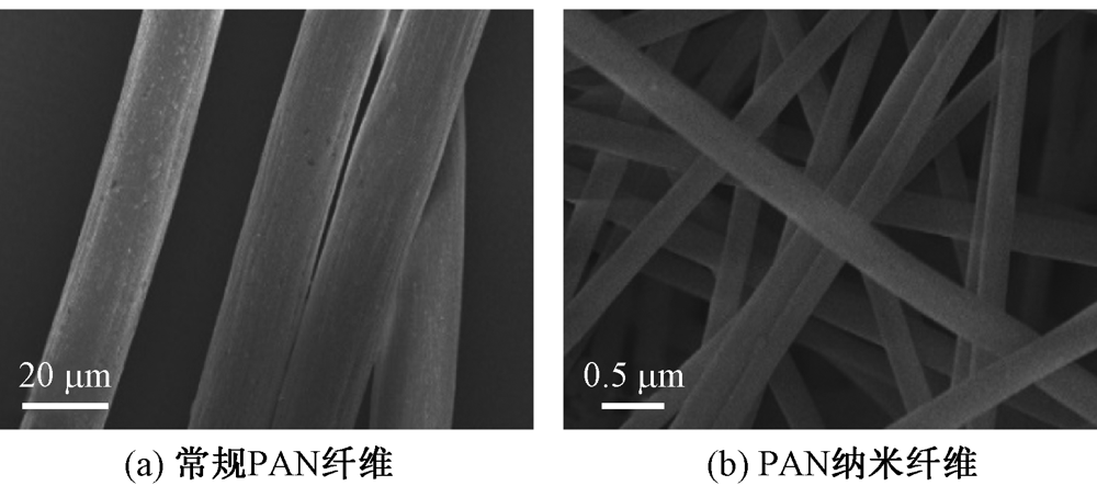 SEM images of commercial PAN fibers (a) and PAN (b) nanofibers"